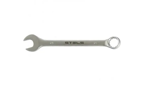 Комбинированный ключ Stels 15229 из стали CrV, 28 мм, покрытый матовым хромом, используется для закручивания и откручивания гаечных и болтовых соединений.