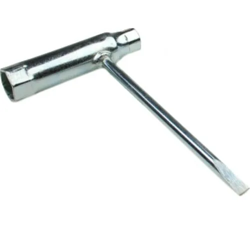 Ключ комбинированный Champion C1201/C240 подходит для бензопил 138, 242, 335, 341, 345, 255. Предназначен для монтажа свечей, шины в бензопиле, и нижняя часть используется для затяжки цепи. С одной стороны имеет размер 16 мм, с другой - 11 мм.