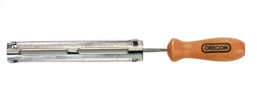 Обойма напильников Oregon q18228c используется как приспособление для заточки пильных цепей бензопил с шагом 0.325". Представляет собой металлический брусок с насечками определенной частоты. Он позволяет легко и быстро затачивать цепь. Также его можно применять для очищения паза направляющей шины от грязи и опилок.