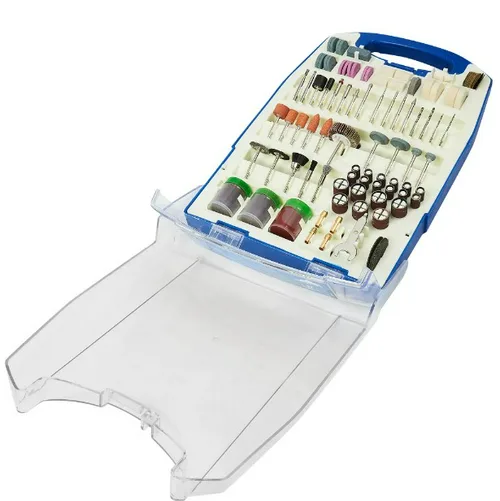 Набор насадок для гравера Vertextools 0987-188 включает 188 предметов, которых достаточно для проведения множества видов гравировочных работ. Каждая насадка имеет разную зернистость и форму, что позволяет проводить высокоточные работы по резке, шлифовке, полировке разных материало