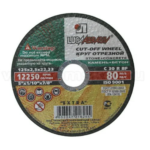 Диск отрезной по камню ЛУГА, 180х3х22мм