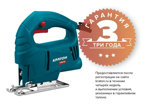 Электрический лобзик Кратон JSE-400/55 используется для обработки заготовок из древесины и металла. Инструмент оснащен поддержкой электронной регулировки оборотов. Наличие специального патрубка для отвода отходов делает возможным подключение пылесоса для поддержания рабочего места в порядке. Предусмотрена регулировка диапазона наклона опорной плиты 0-45 градусов, что повышает комфорт в распиле заготовки. Наличие фиксатора кнопки пуска предусматривает комфортную работу в длительном режиме.