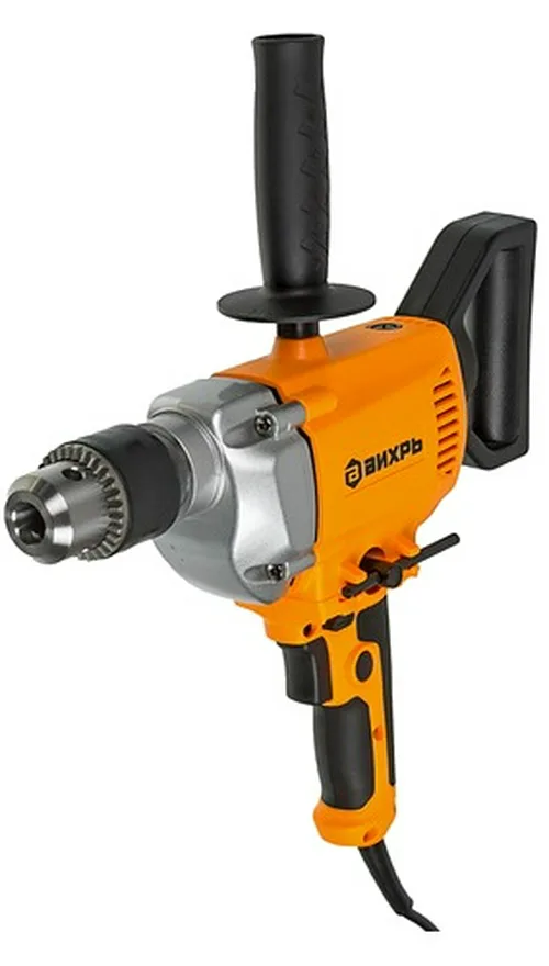 Дрель-миксер Д-1000М Вихрь - электрический инструмент двойного назначения, предназначенный для сверления отверстий в различных конструкционных материалах (дерево, сталь, кирпич, легкий бетон и т. д) (при установке соответствующих сверл), и перемешивание лакокрасочных материалов (при установке соответствующей насадки). Данное устройство сможет одновременно заменить два электроинструмента, что положительно скажется на бюджете покупателя.