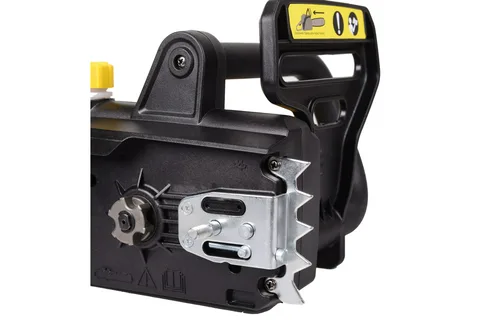 Электропила имеет автоматическую смазку цепи для исключения перегрева металлических элементов во время работы. Контролировать уровень масла в бачке очень удобно, для этого в конструкции предусмотрено специальное смотровое окошко. Механизм быстрой затяжки цепи в данной модели отсутствует.