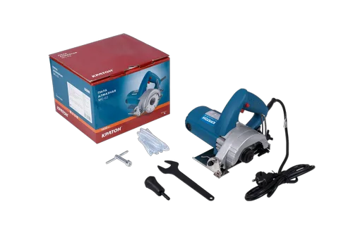 1. Пила - 1 шт.; 2. Переходник резиновый (для подачи воды) - 1 шт.; 3. Ключ торцовый - 1 шт.; 4. Ключ гаечный - 1 шт.; 5. Круг алмазный - 1 шт.; 6. Трубка (для подачи воды) - 1шт.; 7. Щетка угольная - 2шт.; 8. Инструкция по эксплуатации - 1шт.; 9. Картонная коробка - 1 шт.