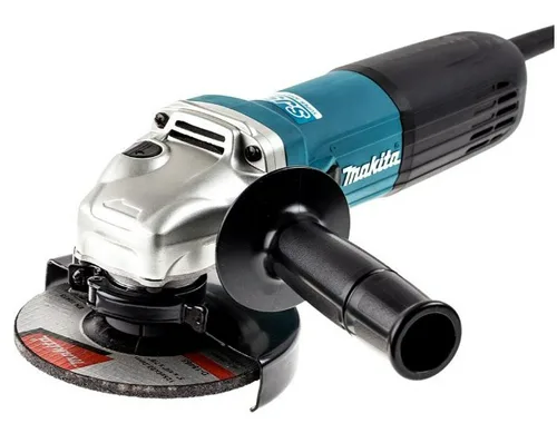 Угловая шлифмашина Makita GA5040 применяется для шлифования и зачистки поверхностей, а также для резания деталей из различных материалов. Дополнительная рукоятка упрощает управление инструментом и снижает уровень вибрации. Установить ее можно слева или справа, в зависимости от предпочтения оператора. Предусмотрена предохранительная муфта, которая защищает оператора и инструмент при заклинивании диска.