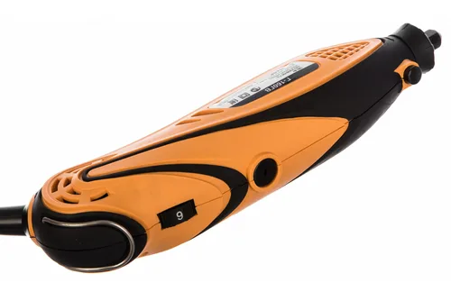 - Для точной работы с различными материалами, возможна регулировка рабочей скорости в пределах от 9000 до 34000 оборотов в минуту;