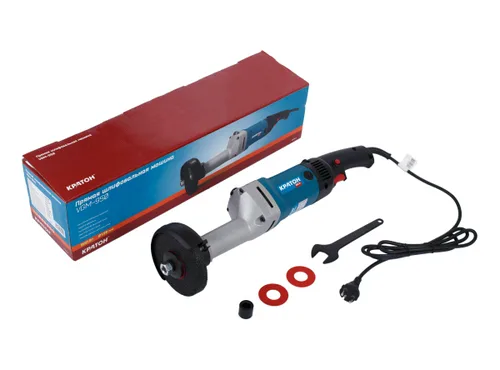 Прямая шлифовальная машина Кратон VGM-950, номинальной мощностью 950 Вт, используется для зачистки металлической поверхности перед сваркой, применяется для шлифовки сварочных швов. Предусмотрена блокировочная клавиша для удерживания кнопки питания во включенном положении. Рукоятка эргономичной формы покрыта прорезиненным полотном, что обеспечивает комфорт при длительной работе с инструментом. Для безопасной эксплуатации предусмотрен защитный кожух. Съемные крышки щеточных узлов позволяют заменять угольные щетки быстро и просто.