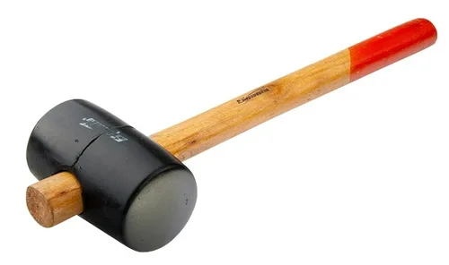 Киянка с головкой из черной резины твердостью 80 ед. по Шору А. От традиционной конструкции инструмент отличается креплением бойка «на протяг». Двухцветная рукоятка, изготовленная из древесины, защищена от рассыхания бесцветным лаком.