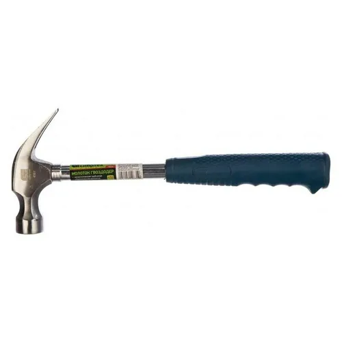 Молоток-гвоздодер Сибртех 10436 длиной 315 мм, с головкой весом 450 г и размером бойка 27 мм, с металлической трубчатой обрезиненной рукояткой, предназначен для проведения монтажных и демонтажных работ. Им удобно забивать крепежные элементы, кроме того, инструмент позволяет выпрямить загнувшийся гвоздь. Молоток полезен на стройплощадке, при сборке мебели, во время отделочных работ, пригодится также для использования в домашних условиях.