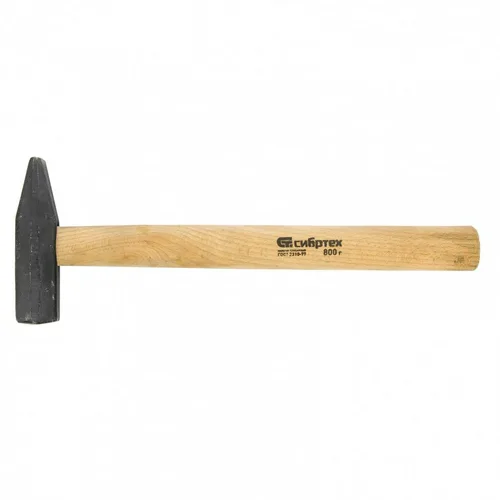 Слесарный молоток Сибртех 10220 длиной 350 мм, с квадратным бойком весом 800 г и деревянной рукояткой, - ударный инструмент, предназначенный для работ по металлу.