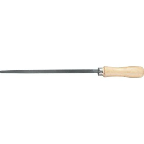Напильник предназначен для качественной обработки плоских поверхностей и квадратных отверстий в твердых материалах. Инструмент имеет двойную перекрестную насечку №2. Площадь сечения напильника уменьшается от середины к носу. Напильник изготовлен из углеродистой стали. Поставляется в комплекте с деревянной рукояткой, которая покрыта бесцветным лаком, защищающим древесину от рассыхания и набухания.