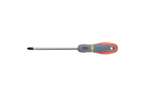 Отвертка Кратон Premium PZ3 х 150 премиум класса. Применяется для крепежа с глубоким шлицем, с ее помощью легко добиться сильной затяжки и точности в работе. Стержень с усиленным крестовым жалом выполнен из хромованадиевой стали, устойчив к коррозии, механическим повреждениям. Исключено образование сколов и повреждений рабочего конца. Дополнительные лучи для надежной фиксации в головке самореза. Многокомпонентная рукоятка для работы в быстром и щадящем режиме, предотвращает выскальзывание отвертки из рук.