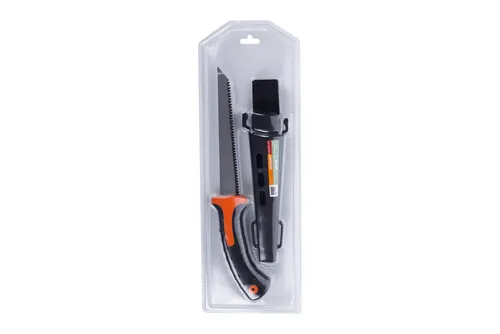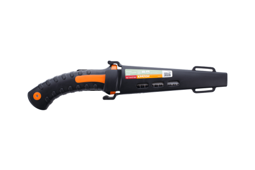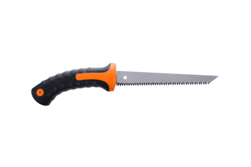 Ножовка марки Кратон используется для обработки гипсокартона. Его длина составляет 150 мм, инструмент изготовлен из высокоуглеродистой стали, имеет отличные эксплуатационные свойства. Острые крупные зубья позволяют качественно, аккуратно обрабатывать поверхность, осуществляя максимально ровный срез. Конструкция предусматривает эргономичную рукоятку, способствующая крепкому захвату инструмента, а также препятствует его выскальзыванию во время интенсивной работы.