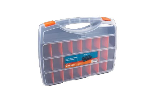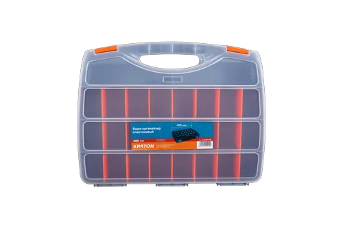 Ящик–органайзер бренда Кратон изготовлен из высокопрочного пластика, который устойчив к перепадам температур, противоударный. При полном наполнении ящика его стенки остаются в первоначальном виде, без деформации. Длина органайзера — 480 мм. Система раскрывания работает четко, без приложения усилий.Компактность органайзера позволяет удобно хранить на полке, в гараже, ящике, а также при транспортировке.