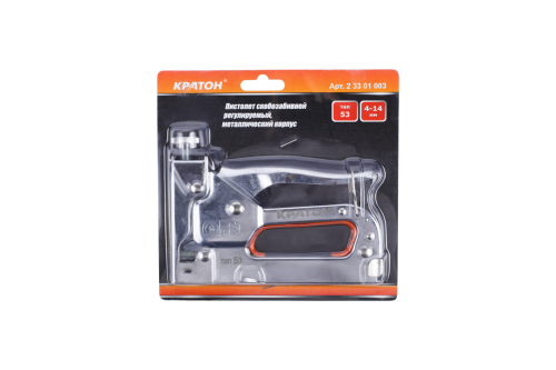 Пистолет скобозабивной Кратон регулируемый, метал корпус, тип 53, 4-14мм - 1 шт.