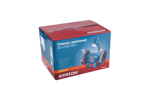 Заточный станок марки Кратон BG 250/150 L удобен для установки и использования в гараже, мастерской или дома. Наличие подсветки рабочей зоны значительно упрощает обработку деталей, обеспечивает аккуратность шлифования и заточки. Станок отлично справляется с обработкой сверл, резцов, ножей, ножниц, подходит для выравнивания металлических поверхностей. Для безопасности выполнения работ предусмотрены защитные щитки, закрывающие рабочие элементы. Специальные пазы для крепления к столу позволяют избежать шаткости, минимизировать вибрации и шум при использовании.