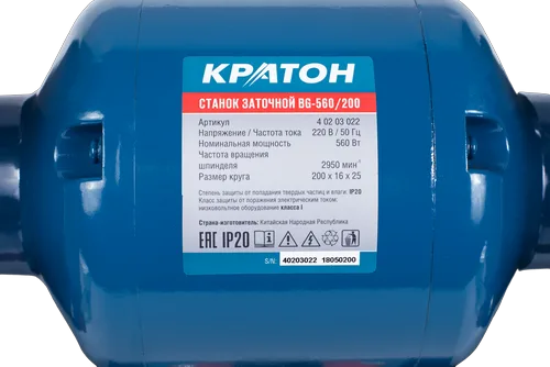 1.Станок заточной Кратон BG 560/200 — 1 шт.; 2.Инструкция.; 3.Картонная коробка.