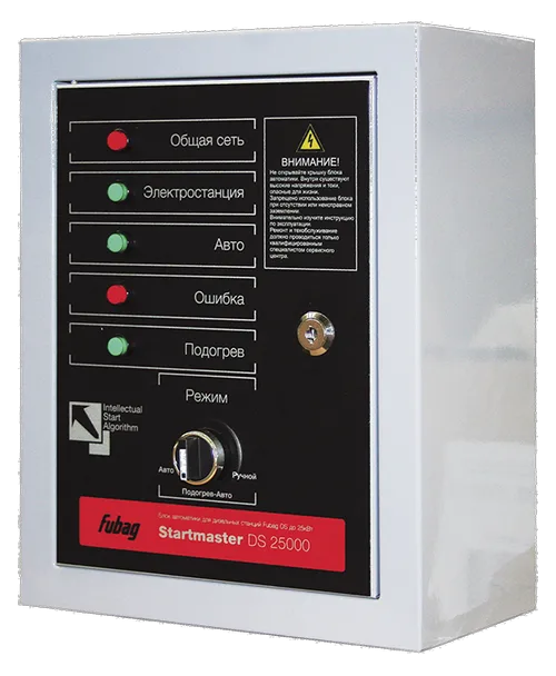 Блок автоматики FUBAG Startmaster DS 30 (230V) обеспечит своевременное переключение электросети на резервное снабжение в случае отключения электричества. Время коммутации составляет одну секунду. При необходимости можно самостоятельно задать время задержки. Устройство автоматического ввода резерва рассчитано на работу с переменным током напряжением до 660 В и частотой тока 50 Гц. Модель полностью совместима с однофазными дизельными станциями: DS 18 A ES, DS 22 A ES.