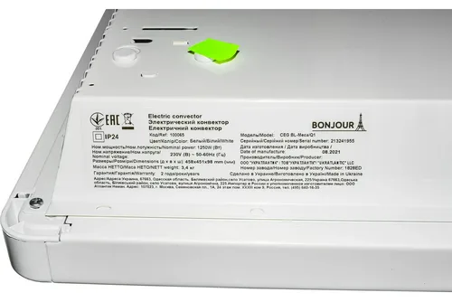 - Конвектор оснащен нагревательным элементом BONJOUR TURBO HEAT с алюминиевым диффузором и защитной оболочкой из нержавеющей стали.