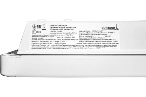 - Конвектор оснащен нагревательным элементом BONJOUR TURBO HEAT с алюминиевым диффузором и защитной оболочкой из нержавеющей стали.
