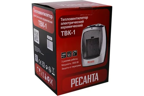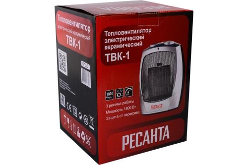 Тепловентилятор РЕСАНТА ТВК-1 мощностью 1800 Вт с керамическим нагревательным элементом и терморегулятором быстро нагреет воздух в помещении площадью до 22 кв. м.
