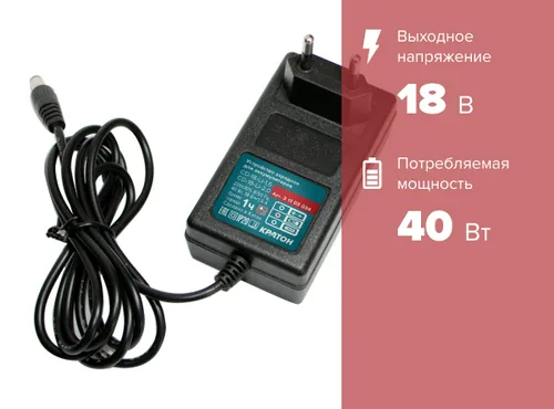 - Параметры зарядного устройств специально подобраны для моделей шуруповертов Кратон CD-18-Li-1,5, CD-18-Li-2,0.