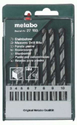 Набор из 8 сверл Metabo по камню и кирпичу с напаянными твердосплавными наконечниками из улучшенной стали. Диаметр сверл: 3, 4, 5, 6, 7, 8, 9, 10 мм. Тип хвостовика - цилиндрический.