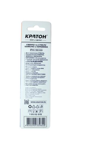 Сверло по стеклу и кафелю Кратон, шестигранный хвостовик, 4-х резцовый, d10 х 100 мм