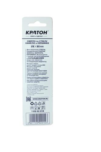 Сверло по стеклу и кафелю Кратон, шестигранный хвостовик, 4-х резцовый, d8 х 80 мм