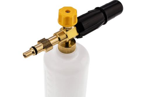 Пенокомплект для моечных машин высокого давления Denzel FPB-1000 58303 из латуни предназначен для нанесения пенного раствора на кузов автомобиля и другие поверхности. Он устанавливается на моечные машины высокого давления Denzel R-серии.