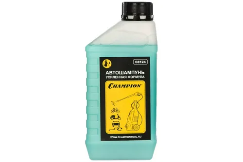 Автошампунь, усиленная формула 1л Champion C8124 - химическое средство для мытья кузова автомобиля и корпуса прочей техники. Раствор легко справляется с тяжелыми загрязнениями. Применяется совместно с автоматической мойкой высокого давления.