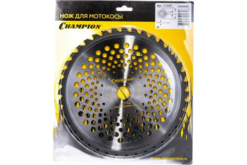 Нож с зубцами из твердого сплава Champion C5107 предназначен для триммеров и используется для жесткой травы, кустарника и тонких стволов деревьев.