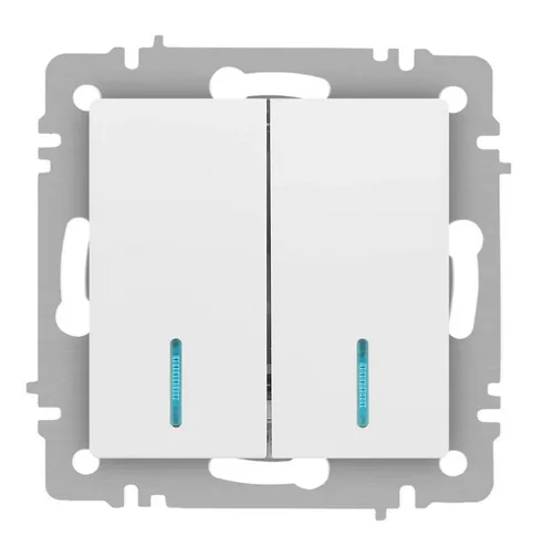 Выключатель ЭРА Intro Accent 6-105-01М, 2 кл, с подсветкой, механизм, белый матовый