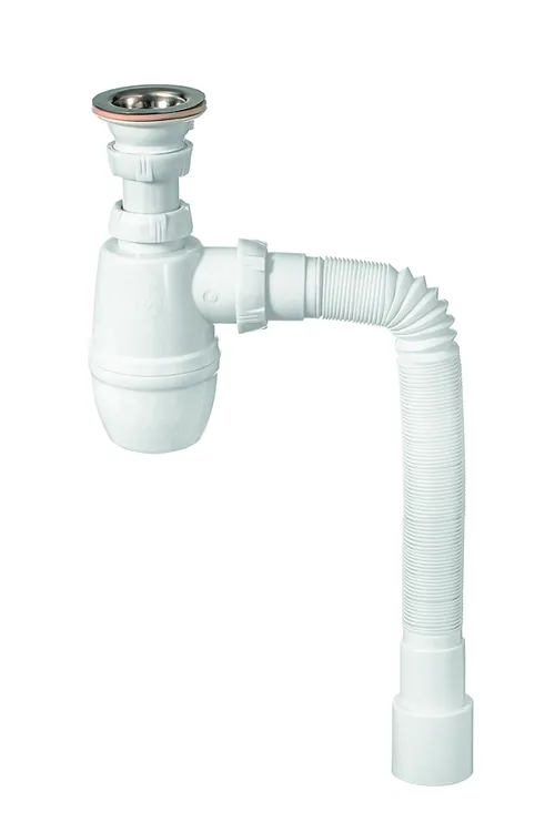 Сифон МИНОР с нерж чашкой Ф63 мм, выпуском 1¼ х 40 мм, гофротрубой L800 мм, 40 х 40/50 мм