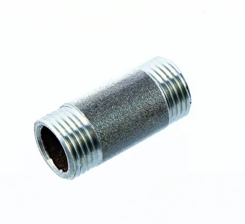 Отрезок стальной трубы с наружной резьбой с двух сторон для соединения двух резьбовых элементов.