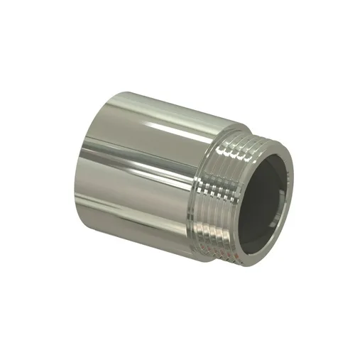 Удлинитель предназначен для наращивания резьбового соединения элементов трубопровода в системах холодного и горячего водоснабжения и отопления. Соединение получается разъемным, что позволяет при необходимости произвести обслуживание участка трубопровода, кроме того, возможно повторное использование фитинга. Замоноличивание разъемных соединений в строительные конструкции - недопустимо. Изготовлен из горячепрессованной латуни марки СW 617N по стандарту EN 12165 (соответ ствует марке ЛС59-1 по ГОСТ 15527). Для защиты от коррозии и придания изделию эстетичного вида, на поверхность фитинга нанесено гальваническое хромированное покрытие.