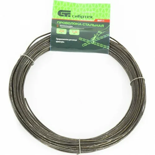 Проволока СИБРТЕХ стальная 20 м, вязальная, термообработанная 1,6 мм