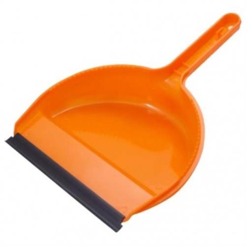Прочный удобный совок округлой формы. Имеет удобную эргономическую ручку с отверстием для размещения на крючке. Края совка оснащены зубчиками для чистки щетки после ее использования. Совок имеет резиновую кромку, благодаря которой удобнее собирать мусор.
