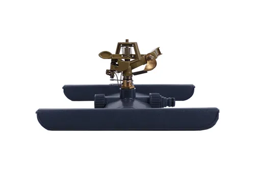 Импульсный дождеватель марки Кратон используется для орошения газонов, грядок, плодовых деревьев и цветочных клумб. Он изготовлен из латуни, что обеспечивает ему длительный срок эксплуатации. Подставка крепко фиксирует дождеватель, за счет чего он не сдвинется с места при любых погодных условиях. Максимальная площадь полива составляет 530 кв., таким образом большая территория будет полита за короткий промежуток времени. Такое приспособление станет полезным для садовников и фермеров, он легко подключается к водопроводу.