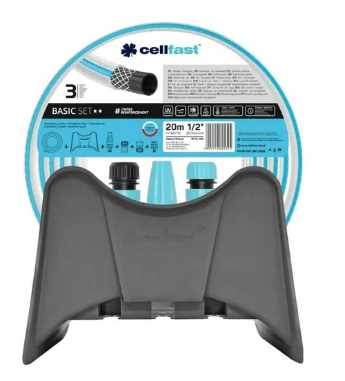 Шланг Cellfast BASIC поливочный, армир, трёхслойный, 1/2" 20 м + набор для полива