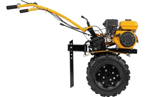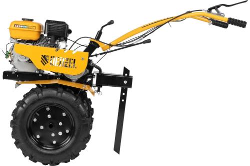 - Удобная работа — основные элементы управления расположены на рукоятках, для включения сцепления и регулировки оборотов двигателя не нужно наклоняться