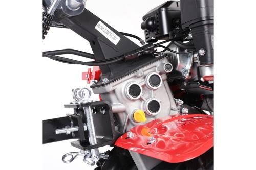 Мотоблок оснащен мощным 4-х тактным бензиновым двигателем и надежной многоступенчатой трансмиссией - шестеренчато-цепным редуктором в чугунном корпусе.
