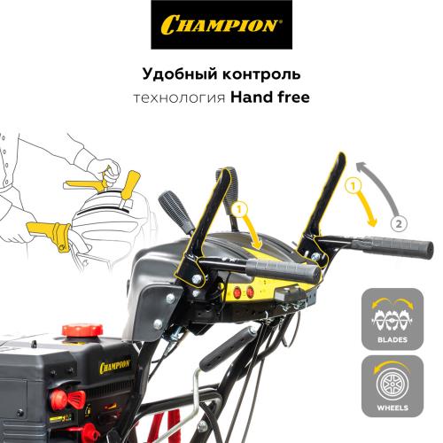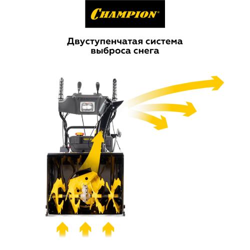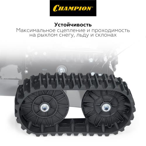 Снегоотбрасыватель CHAMPION 7,0 лс, 61см 6F/2R гусеницы 3л 90 кг электростартер, фара, обогрев рук STT761E предназначен для садовых работ.
