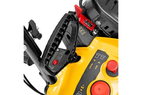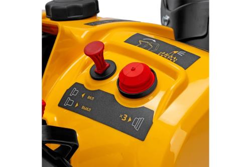 - Удобное управление — широкая рукоятка ручного старта облегчает запуск двигателя, для регулировки угла поворота желоба не нужно наклоняться