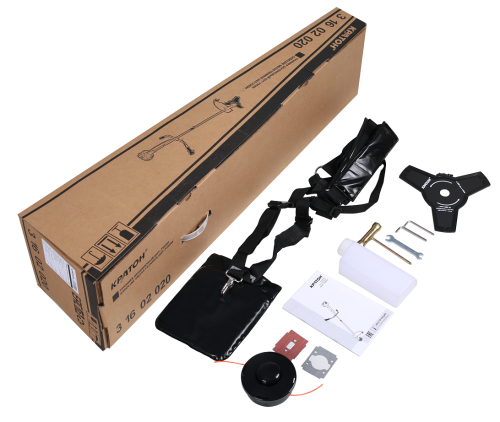 1. Триммер бензиновый Кратон GGT-750SH: 1 шт. ; 2. Штанга: 1 шт. ; 3. Защитный кожух: 1 шт. ; 4. Рукоятка: 2 шт. ; 5. Ремень одноплечный: 1 шт. ; 6. Режущая головка с кордом: 1 шт. ; 7. Режущий нож: 1 шт. ; 8. Емкость для топливной смеси: 1 шт. ; 9. Комплект крепежных изделий: 1 к-т. ; 10. Прокладки: 1 к-т.