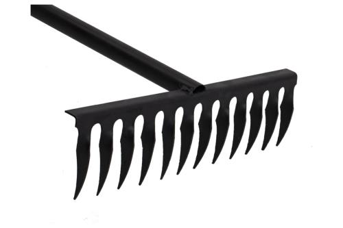 Прочные классические грабли для почвы. Металлическая ручка, витые зубья. Достаточный вес для работы с почвой. Толщина зубьев 2 мм. Оптимальный диаметр черенка для комфортной работы.