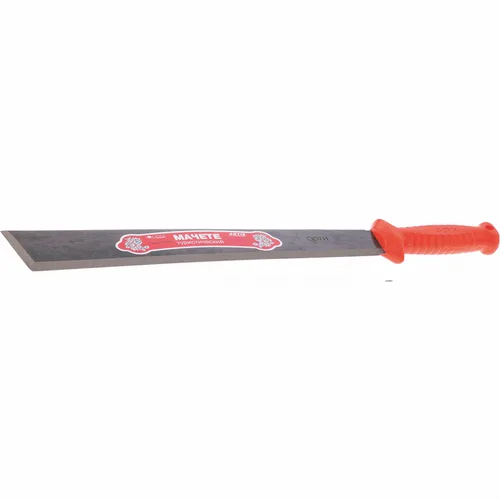 Туристическое мачете АРТИ 60400, 490 мм, с пластиковой рукояткой — это универсальный инструмент, который пригодится как в хозяйстве, так и в туристических походах. Его можно использовать для рубки стеблей кукурузы, подсолнечника, сорняков с толстыми стеблями, мелкой поросли кустарника, мелких дров и для прорубания троп в зарослях.