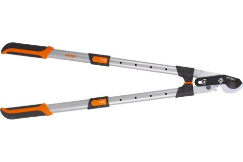 Благодаря телескопическим ручкам можно увеличить усилие, а храповой механизм дополнительно облегчит процесс обрезки веток.