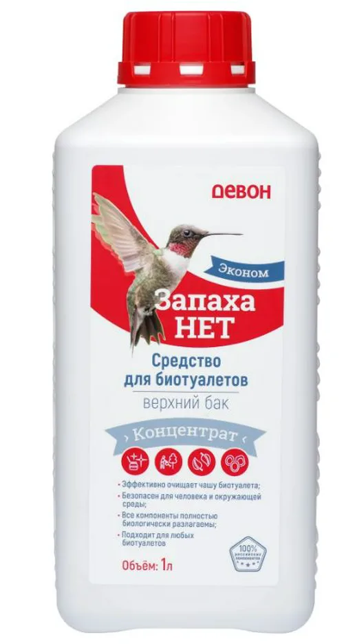 Средство «ЗАПАХА НЕТ» Верхний бак - это специальный ароматизирующий шампунь для верхнего (смывного) бака биотуалета в виде жидкого концентрата. Эффективно очищает чашу биотуалета, сохраняет воду в баке свежей, оставляет приятный аромат, образует на туалетной чаше защитную пленку, которая облегчает смыв, предотвращает изменения цвета пластмассы и дезинфицирует поверхность. Все компоненты полностью биологически разлагаемы, поэтому содержимое из биотуалета можно сливать в компост. Подходит для любых биотуалетов.